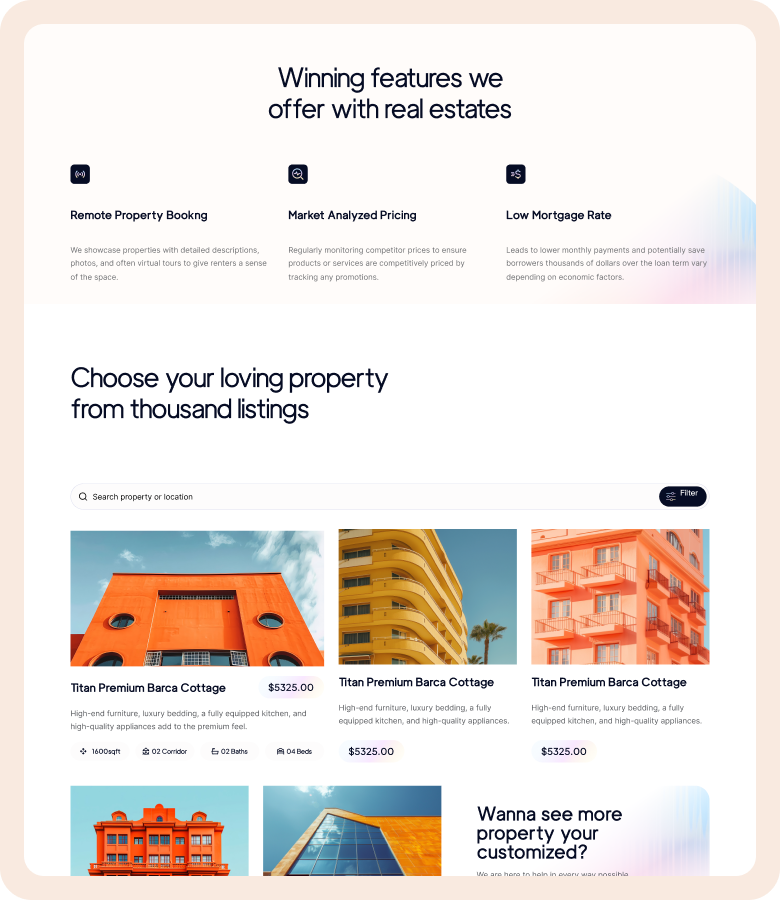 The goal was to create a high-conversion platform that loads fast, guides users to the right listings, and helps them take action, whether that’s booking a visit or requesting more info. It had to look premium, be easy to manage, and scale with future listings.